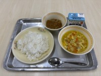 ごはん卵スープドライカレー牛乳