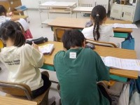 漢字の練習です。読み方や書き順を確認し、ドリルにていねいに練習していました。