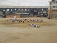 体育参観に向けての練習です。運動場で、隊形移動を行っていました。