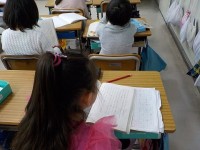 「スーホの白い馬」の学習です。今日は、音読に取り組んでいました。「先生も子どもの...