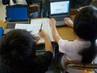 仕事について調べ、紹介文を書きます。タブレットで調べた内容を、ワークシートにまと...