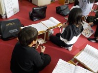 アコーディオンや鉄琴、木琴を使って、「茶色のこびん」の合奏を行っていました。
