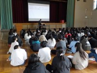 防災の学習です。今日は、阪神大震災を経験された先生をお招きして、震災についてのお...
