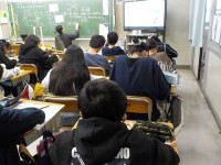 地震に対する備えについて考え、タブレットにまとめたことを交流していました。
