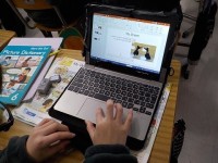 中学校でがんばりたいことを、タブレットでまとめています。