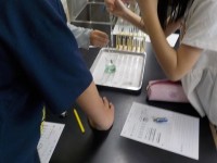 理科の授業がはじまりました。なにをまぜたら、どのような色になるのかを確かめていま...