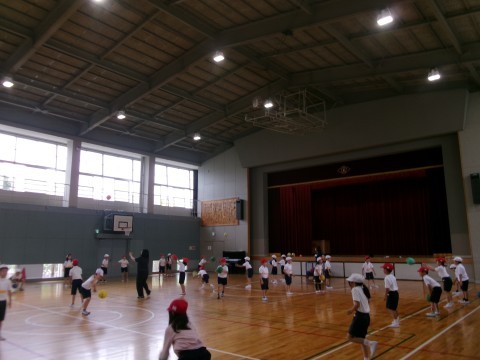 ボール運動です。いろいろな投げ方を体験していました。にこにこパス、キャッチを繰り返していました。体の動かし方が上手になってきました。