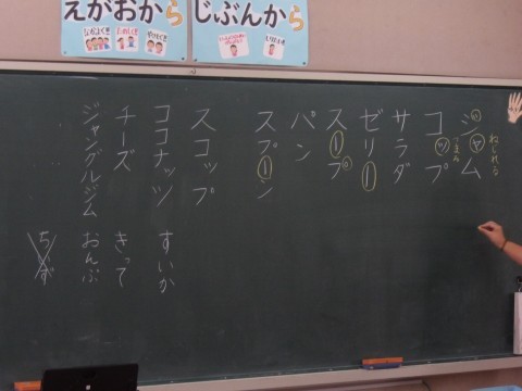 教室ではかたかなの学習です。身の回りで使われているカタカナを発表していきます。