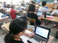 連合音楽会に向けて、日々合唱の練習をがんばっている5年生。今日見に行くと、前回とは比べものにならないくらい上手になっていました。アルトとソプラノに別れて、しっかりハーモニーを奏でていました。思わず大拍手。まだまだ伸びると思うと楽しみです。