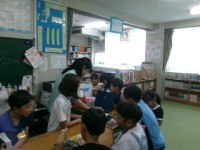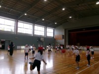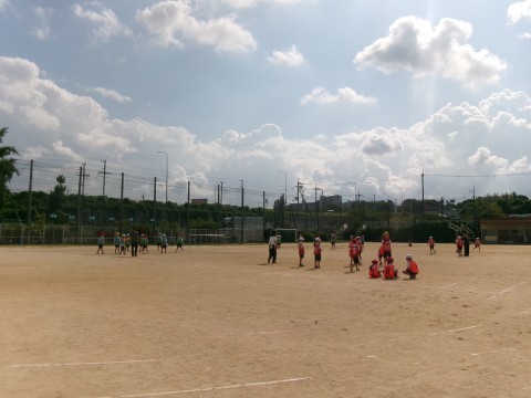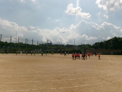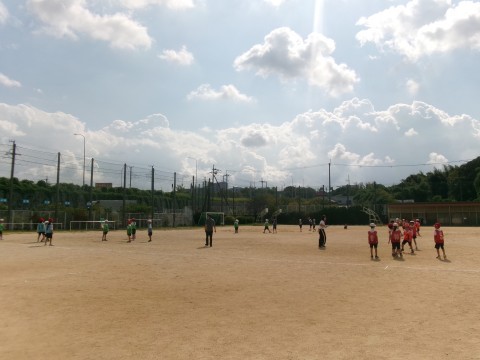 サッカーボールを使った球技です。ボールの取り合いとゴールを決める面白さがあります。今日は、爽やかな天気で気持ちよかったです。