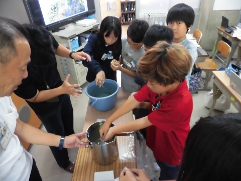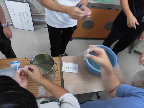 堺市役所の人に来てもらい,実際に前田川の水の水質を調べました。