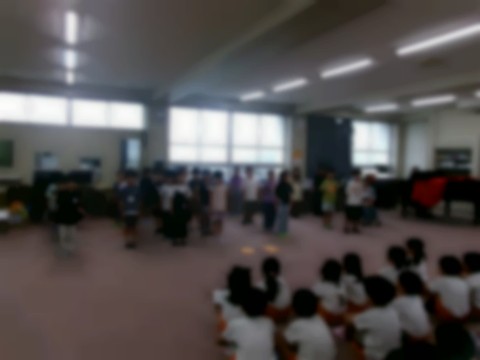 今日は、1年生とまつのみこども園さんとの交流会でした。1年生がリードして、校歌を歌ったり、鍵盤ハーモニカを披露したり、深阪小学校のことを〇×クイズで出したりと工夫をこらしていました。最後に「もうじゅう狩りに行こうよ」という遊びをみんなで楽しくして大盛り上がりでした。さすが1年生!という立派な成長した姿が見られて感心しました。