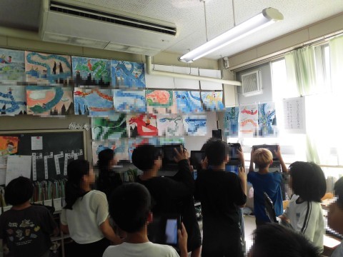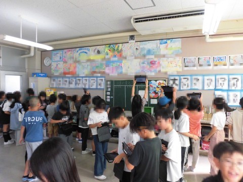 「素敵だな!」「真似してみたい」と思う作品を選んで,写真を撮ったり,どんなところが良いと思ったかワークシートに書いたりしながら回っていました。