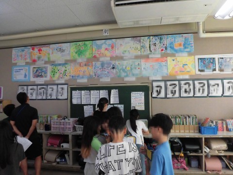 それぞれのクラスを回り,友だちの作品を鑑賞します。