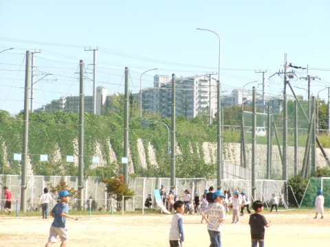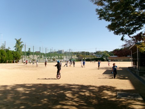 今日は気持ちの良い快晴で、お昼休みに運動場を見てみると、子ども達が思い思いに楽しんでいました。