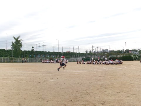 徒競走の練習です。3年生は昨年度より距離が延び、走るコースも直線ではなく、コーナーを使います。