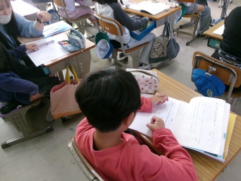 1組も2組も「ちいちゃんのかげおくり」の学習に取り組んでいました。内容は違いましたが、両クラスとも、教科書の叙述に注目して読み取ったり、考えたりしていました。とても大事な力がついてきていますね。