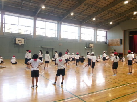 団体演技のダンスの練習です。随分かっこよくなってきました。途中で、隊形の話や動きの確認をしながら進めていました。先生も踊っていましたよ~
