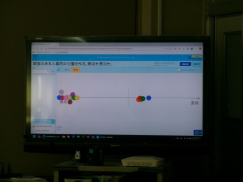 どちらのクラスも今日は「差別」について考える人権学習でした。ゲストティーチャーに来ていただき、「部落差別」についてを語ってもらいました。子ども達は時折自分からメモを取りながら真剣に話を聞いていました。心にささるものがあったと思います。また、身体障がい者専用の公園は必要なのかということを、パソコンで自分の意見を見えるかしながら、考える授業もしていました。友達の意見を聞くことで考えが深まっていくのがわかりました。今日の学びをお家でぜひ語ってもらいたいです。