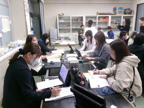今日は、ICTインフルエンサーの方が来てくださっていたので、放課後に振り返りをしました。その後、生活・総合的な学習の内容や指導案、掲示物など、子ども達のよりよい学びにつなげるための研修を行いました。先生たちも頑張っています!