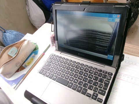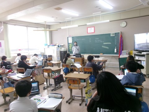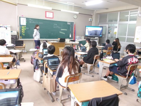 地層のしましま模様がどうやってできたのかを考えていました。一人一人パソコンで、地層をアップしたもので確認しながら考えていました。