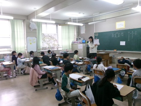 体育参観の詳細をお家の人に知らせる学年通信のプリントに自分の場所を確認して書いていました。先生の話を聞きながら、実際の場所とプリントの図を一致させるのが2年生の子ども達にとってはとても難しかったようです。
