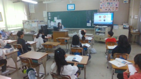 1組は,外国語をしていました。廊下にも♪ABCDEFG~♪と楽しそうに歌う声が聴こえてきていました。