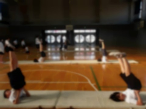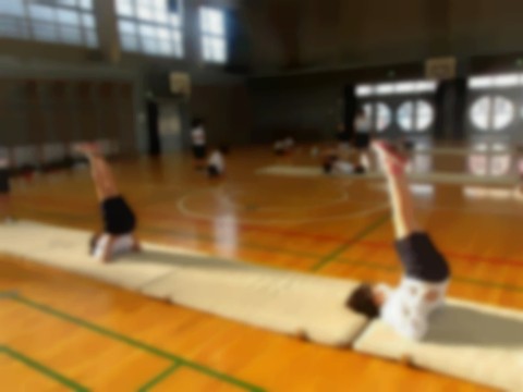 今日は背倒立をしていました。ポイントは腰に手を当て、肘で地面をしっかり押す!