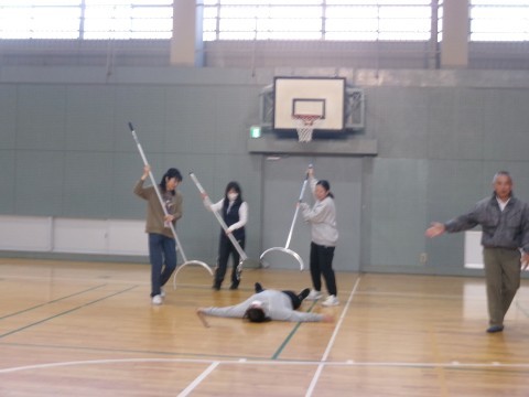 不審者対応訓練の様子です。毎年警察OBの方に来ていただき、対応について教えていただきます。対応がとても難しいです・・・