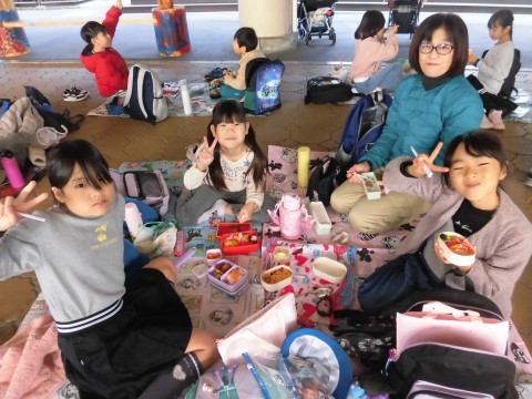 みんな,お家の人が作ってくれたお弁当を,とっても嬉しそうに食べていました。友達と仲良く話しながら,楽しくおやつタイムもできました。