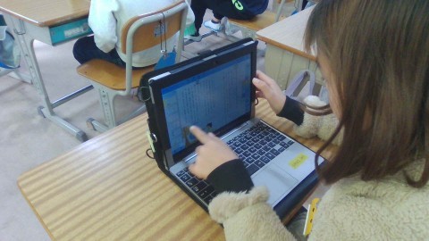 今日はタブレットを使っています。文字を大きくしたりペンの操作をしたりしながら,