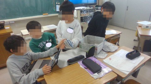自分たちが学習している『防災』について,後日2年生に伝えるそうで,グループに分かれて準備をしています。画用紙に大きくかいて伝えようとするグループ,パソコンを使って伝えるグループなど,グループによってそれぞれです。