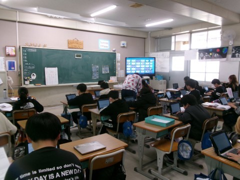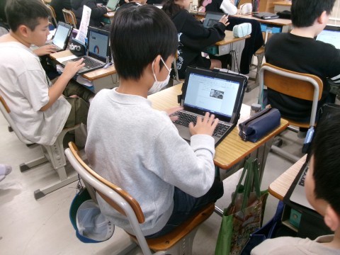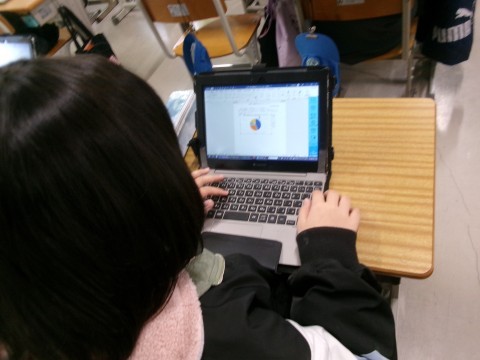 資料を使って,自分の主張を述べる文章を作成していました。どの子も自分でグラフを作ったり,張り付けたりして,資料を根拠にしながら環境問題についての自己主張の文章を段落構成も考えながらパソコンで作成することができていて感心しました。