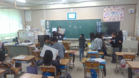 2組は,漢字テストが返されていました。「ここがきちんと書けていないと×だよ。見直してね。」と言われて,自分の書いた字を再度確認。今回間違えてしまったところは,次に同じ字を書くときには正しく書けるようにしようね。