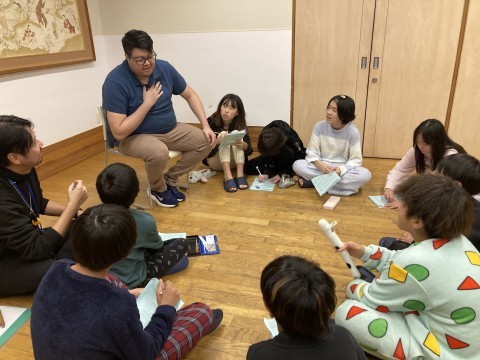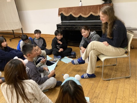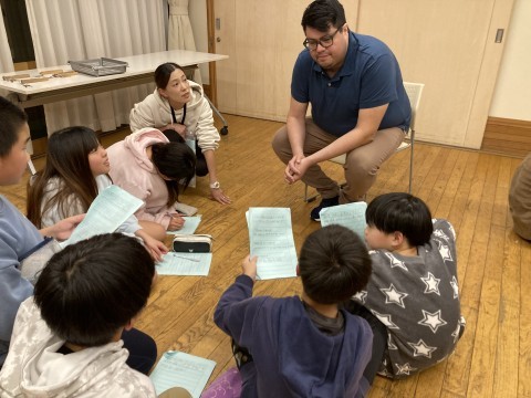 総合的な学習の一環として、宿泊施設で働くアメリカ人とドイツ人のスタッフに、なぜ日本で働いてたあるのか?や、日本の好きなところは?など、英語で一生懸命に聞いて、答えてもらっていました。貴重な経験ですね!子ども達はとても積極的に質問していて頼もしかったです!
