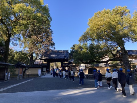 「うわぁ、金ピカや!」「上についてる鳥みたいなのは何かな?」など、発見や疑問の声が聞こえてきました。本物を見たからこその声ですね。