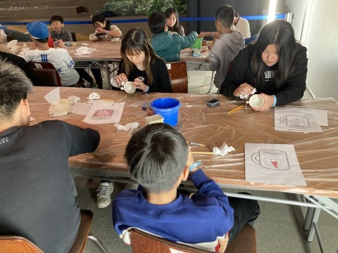 唯一無二の世界で一つだけのマグカップができあがりました!焼き上がりが楽しみですね。