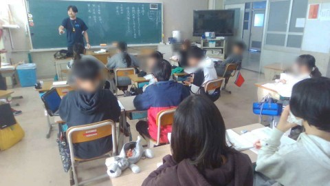 1組は国語の授業中。「貿易」ってどういうこと?普段普通に使って話しているけれど,どういう事か説明するって難しいですね。