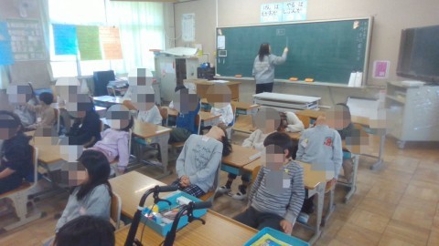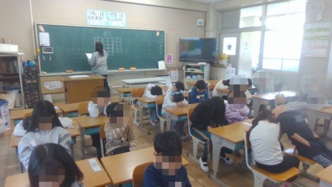 ちょうど1年生の教室の前にさしかかった時,「いえ~~い!!」という楽しそうな声が聞こえてきました。