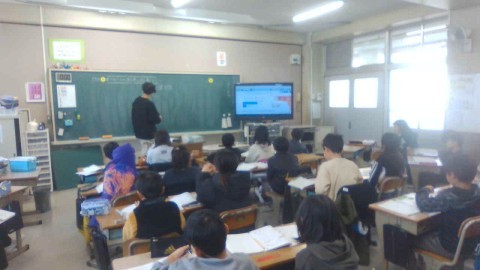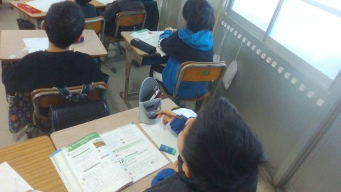 4年生は算数の授業中。「面積」の学習です。今日初めて「平方センチメートル」を習いました。これからたくさん出てくるよ~しっかり覚えておこうね!