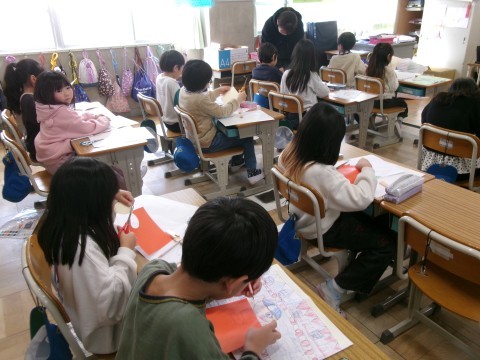 紙版画にチャレンジです。先生の説明を一生懸命聞いて,いざやってみますがなかなかうまくできないことがたくさんあります。試行錯誤が成長へとつながります。楽しみながらがんばって!