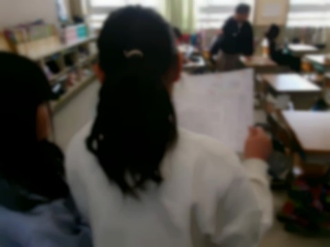 お話作りです。起承転結で物語を考えて,さらに絵で表現していました。なかなか面白い転換や結末に関心しました。友達と見せ合ってよりよいものにしている児童もいました。