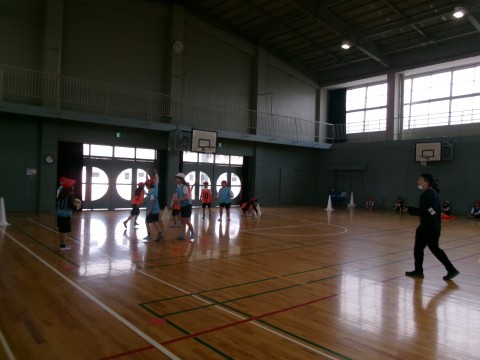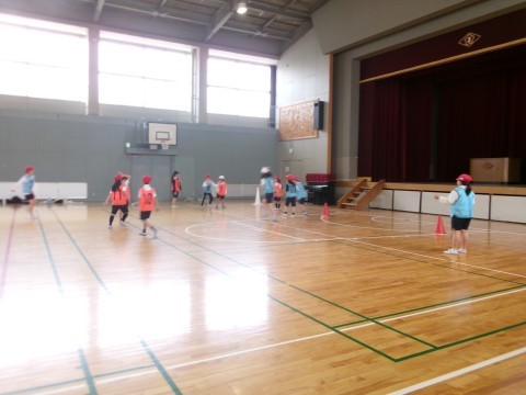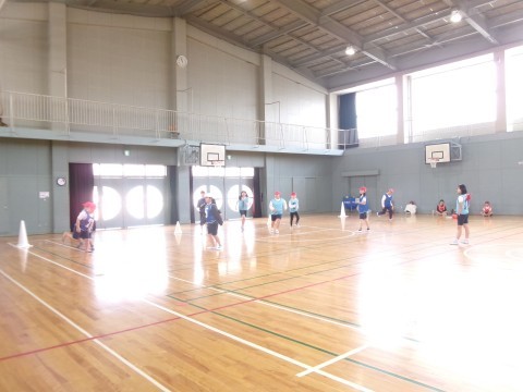 ゴール型のボールゲームの活動です。上手にコートを広く使っていたのが素晴らしかったです!自分がどう動いたらいいのかよく考えていました。