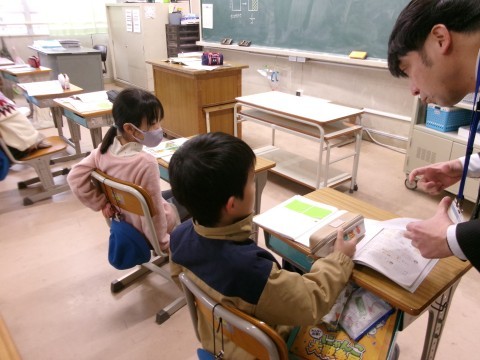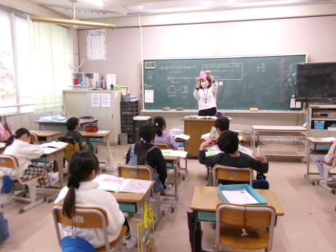 2分の1は1をもとにして2つに分けた1つ分という分数の基本の学習をしていました。今日は教育委員会の指導主事の先生も学校の様子を見に来てくれていて,質問されたことにしっかり答えている場面も見られました!