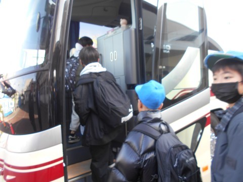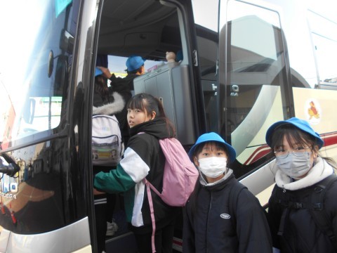 実行委員さんのあいさつの後,バスに乗って出発です。