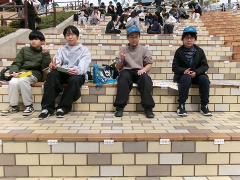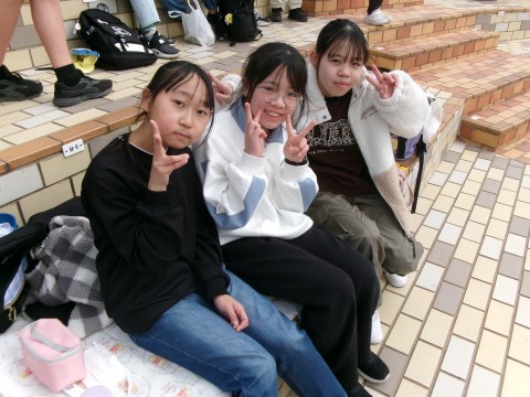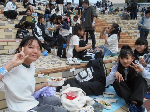 外の日差しもぽかぽかと暖かくなり,野外ステージ広場でお弁当タイムです。