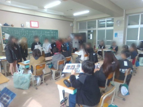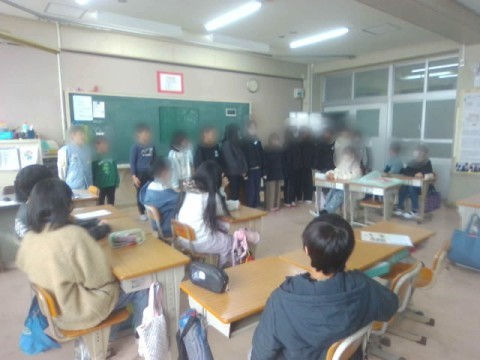 今日の朝学の時間,卒業を目前に控えた6年生の教室に5年生が・・・。