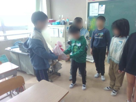 「連合音楽会の時に,お守りをくれてありがとうございます。」「中学校へ行っても頑張ってください。」「これまで,学校を引っ張っていってくれてありがとう!」という感謝の気持ちや思いを伝えに来ました。