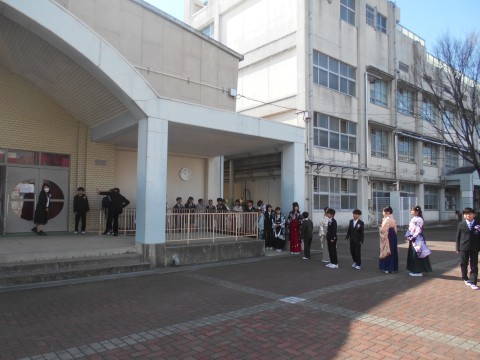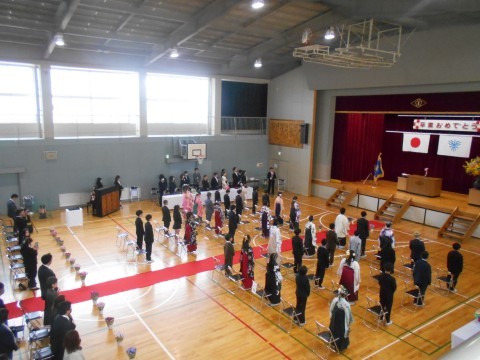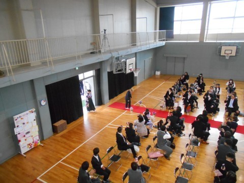 少し緊張した表情の中にも,これまでの成長を感じさせる凛とした姿で,一人一人が堂々と式場へ歩みを進めていました。