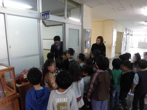 学校の中のよく使う場所を,みんなでたんけんしました。職員室の入り方も習いました。まだまだ他の教室もたくさんありますが,今日はここまで。楽しみにしておいてくださいね。